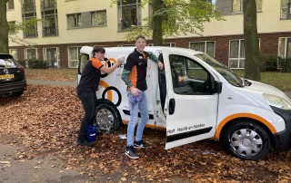 In het najaar kan het nog wel eens nat en modderig zijn op de weg. Dan worden de KrachtVaardig auto's nogal vies en dat kan niet werd er geroepen! Dus zijn twee slimme werkkrachten op